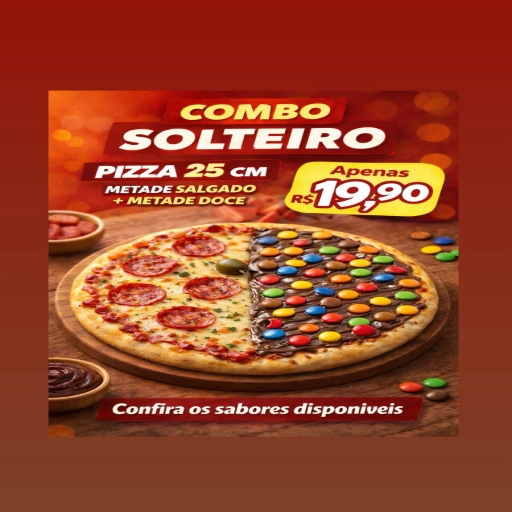 Pizza de 25 cm, preparada com metade salgada e met... Ver completo